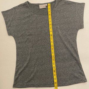 Dantelle Silver Grey Metallic Shimmery Light Shirt Short Sleeve Scoop Neck Small