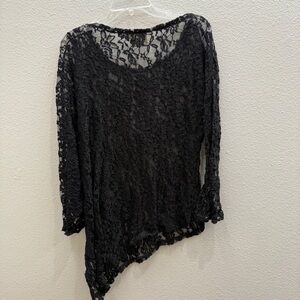 Dantelle Women's Blouse Top Size Medium Black Sheer Floral Lace Asymmetrical Hem