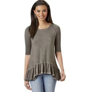 Dantelle Women's Size Medium Oil Dye Ruffle Hem Drop Waist Top Gray