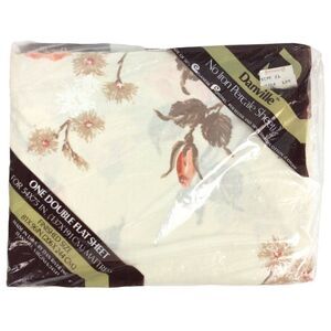 Danville No Iron Percale Double Flat Sheet Floral Pink Roses 180 TC Vtg 80s
