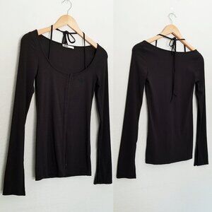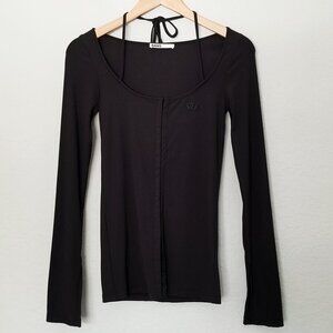Danz New York FIR Hook & Eye Long Sleeve Top with Front Tie Slit Long Sleeves 38