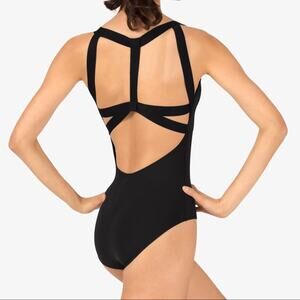 A staple with a modern twist! This leotard features tank sleeves, flattering princess seams, and an eye-catching multi-strap back. Leotard is shelf lined.