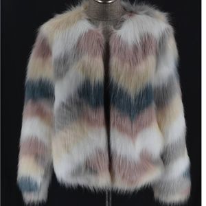 Daphnea Paris Multi Colored Faux Fur Jacket-L