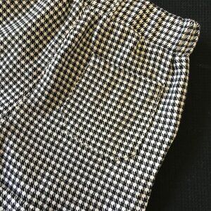 Bottoms: Coordinating black and white herringbone shorts offer a tailored look with a timeless pattern that complements the vest styling.
