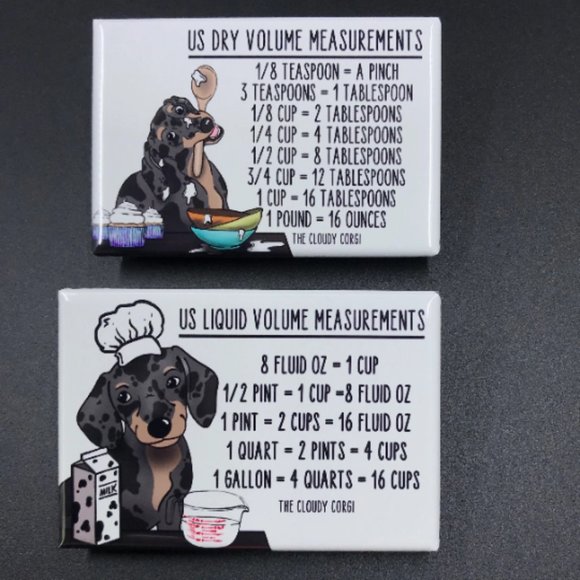 This handmade magnet set features hand illustrated dogs with handy conversion charts you can reference while cooking or baking!