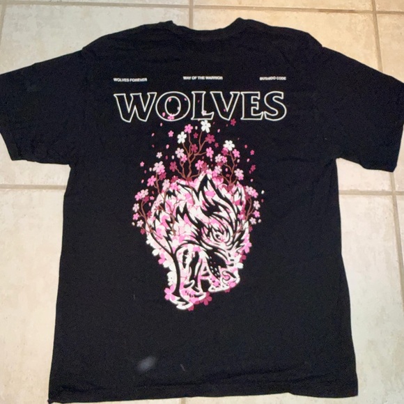 Stylish black tee with a bold Wolves graphic. Features floral accents. Ideal for casual wear.