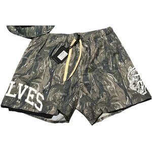 Stylish camouflage design. Features bold wolf graphic. Comfortable fit for athletic activities.