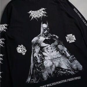 Black tee with intricate web and coffin design. Features bold graphic. Perfect for casual wear.