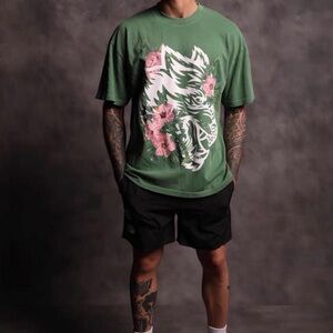 The Darc Sport T-Shirt in Black/White Wolf head design is a premium vintage collection item that features a graphic print of a grey wolf on a black cotton material. This limited edition, oversized tee has a relaxed fit with a crew neck and short sleeves, making it suitable for all seasons. With a sports theme and Marvel Universe character family, this t-shirt is a stylish and unique addition to any man's wardrobe.