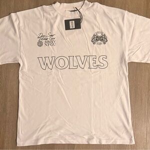 Stylish white tee with LA Wolves graphic. Ideal for casual wear.