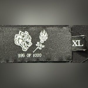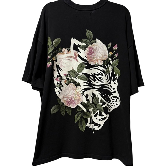 Rare limited-edition Darc Sport "Wolves Forever" oversized tee in black, featuring front micro-prints and a large back graphic with a wolf head intertwined with blooming roses. Numbered 996 of 1000, making this a highly collectible piece for Darc Sport fans and Wolf Pack drops.