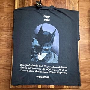 Darc Sport/Batman Collaboration Men's T-Shirt. This Premium Collab Tee is Sold Out online and features a striking graphic of The Dark Knight on back. Perfect for any Batman or Comic Book fan out there! #868 of 1000 ever made. Size Large over-sized so this can fit an XL comfortably. Brand New with Tags!!