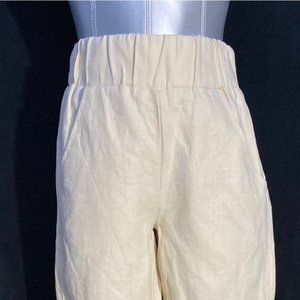 Darcy Pants XS Creamy Beige 100% Linen Ankle Length High Waist Pocket NEW