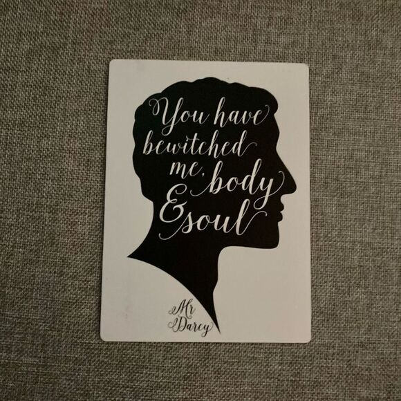 New. Pride and Prejudice Mr Darcy magnet. "you have bewitched me body and soul." 5.5x4". Strong enough to hold notes and photos. *Reasonable* offers only please.