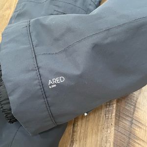 Dare 2B charcoal, gray snowboard, or ski bibs in boys size 11 -12. Adjustable and removable shoulder straps. Adjustable waist with exterior Velcro belt straps. Reinforced knees and boot guard. Snow gator. Lined and insulated. One twice in excellent condition