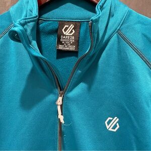Dare2b jacket with zip closure. Fleece lined. Turquoise color with logo accent.
