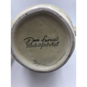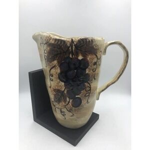 Dario Farrucci Designs Ceramic Pitcher Grapevine Theme With Handle. Pitcher is pre-owned in good condition. Please see photos for visible condition. No original box. Shelf not included. No noticeable chips/cracks. Dishwasher safe. Approximately 9.5 inches tall with 6 inch opening. 9 inches wide including handle. Will ship in a larger box for safety which will affect shipping costs.