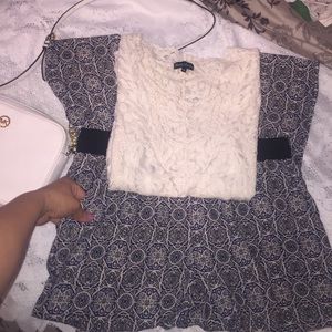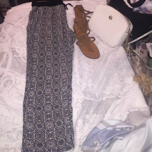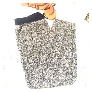 Comfy Darjoni women's loose fit pants. Size large with pockets and elastic waist.Stylish white/black/royal blue colored print. Straight legged. In great conditions.