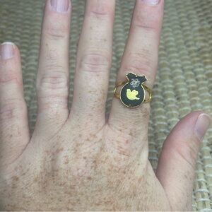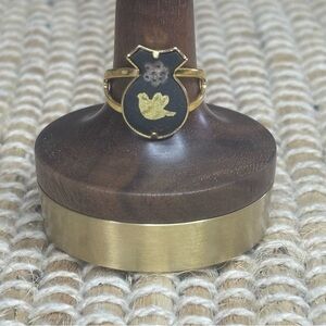 Dark Academia Black Gold Tone Bird Flower Costume Fashion Ring Women’s Size 6