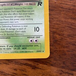 Dark Arbok 19/82 60 HP Pokémon card with vibrant artwork. Features a striking purple and yellow design. Rare and very nice condition! Perfect for any collector!