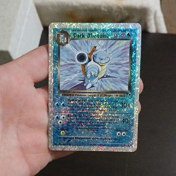 Dark Blastoise reverse foil from the Legendary set, card is in nearly mint condition. Holographic and rare, card is set in a hard plastic sleeve.