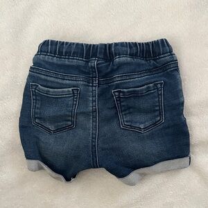 Stylish dark blue shorts with rolled cuffs. Comfortable elastic waistband. Perfect for playtime.
