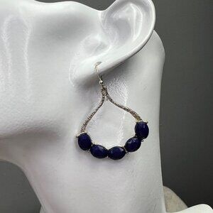 Dark blue dangle earrings in silver tone. Good condition. Approx 1-3/4" long.