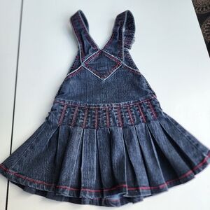 Pumpkin Patch Girls Black Red Stich Denim Jeans Overall Pleated Skirt Dress Sz 5