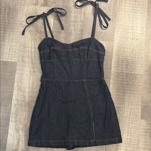 Dark Blue Denim Romper with Tie Straps