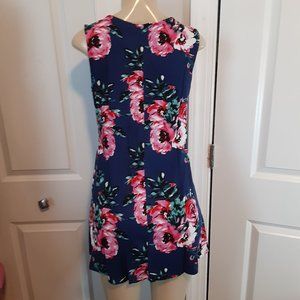 Dark Blue & Floral Print Sleeveless V Neck Tunic Top
