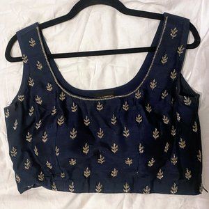 Dark Blue Hand Embroidered Jacket Lehenga Set