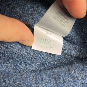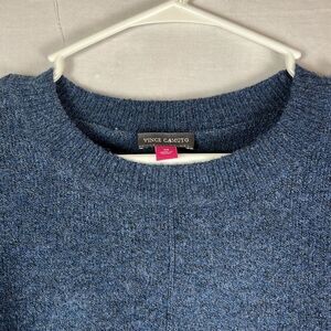 This is a great dark blue oversized Vince Camuto center seam cozy sweater! Pit to pit is 26 inches and shoulder to bottom hem is 24 inches.