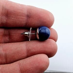 Dark Blue Round Bead Stud Earrings Silver Tone Post Back Everyday Basic Simple Length:7/8 in Dia: 3/8 in All jewelry comes cleaned and in a gift box. Metal, Materials, and stones are not tested.