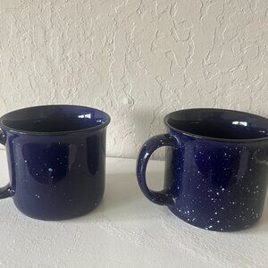 Dark Blue Speckled Campfire Style Pine Tree & Blank Ceramic Mug 16oz (set of 2)
