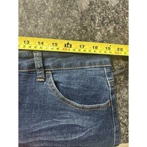 Dark Blue Wash Modest Denim Pencil Skirt Stretch Straight Size XL Frayed Hemline