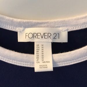 navy blue in color, white trimmed neck line and sleeves, crop top, worn once