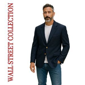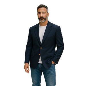 Dark Blue Wool 2 Button Blazer Suit Jacket with Regal Brass Buttons – Classic Timeless Style sz 42R in EXCELLENT like NEW Condition!