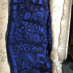 Dark Blue Wrap/ Scarf by Saks Fifth Avenue 60% Silk, 40% Rayon, Made in France, Art Prints on fabric, Excellent Condition,