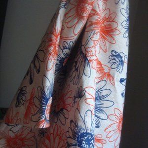 Dark Blue/Orange Large Print Daisy Pattern Woven Fabric