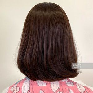 Beautiful Dark Brown Bob Straight Wig. Made with heat resistant synthetic fibers so the hair can be styled with a curling iron or flat iron under 250F° degree. The cap is adjustable for easy wear. The hair at front is designed with a hair bangs which mimics the look of a natural hair look and is also more comfortable and Breathable. The hair parting is fixed.