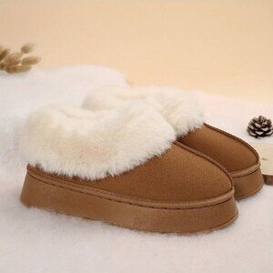 Dark Brown Casual Women's Thick Flat Suede Shearling Slippers
