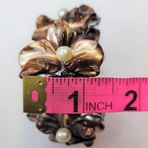 Dark Brown Cuff Bracelet with Pearls and Dyed Mother Of Pearl Shell Bangle -NEW