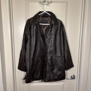 Dark Brown Leather Button Down Collared Jacket Centigrade Leather Size 1X