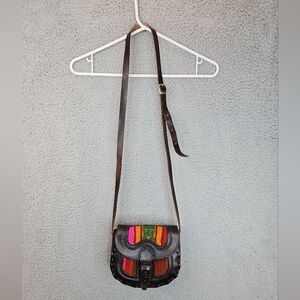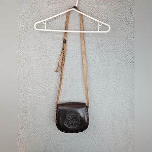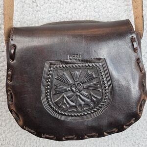 Dark Brown Leather Womens Cross Body Peruvian Handmade Purse Sz Small Adj. Strap