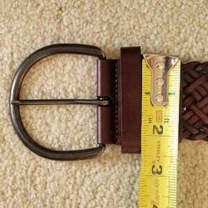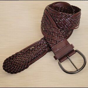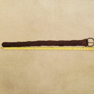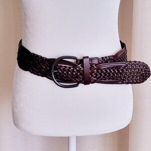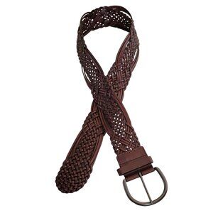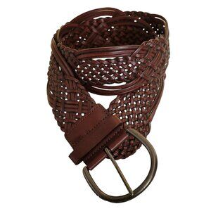 Dark Brown Leather Wide Woven Braided Belt - Unbranded