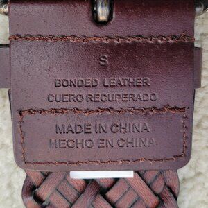 Size S. Fits small to medium. Length from tip to tip (excluding buckle) is 38". Adjustable. Buckle can be inserted in any opening of the braid along the the length of the belt.