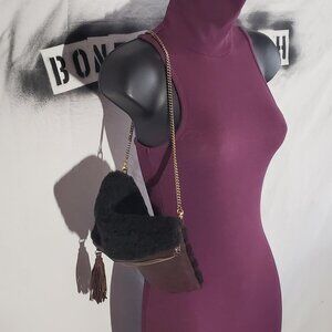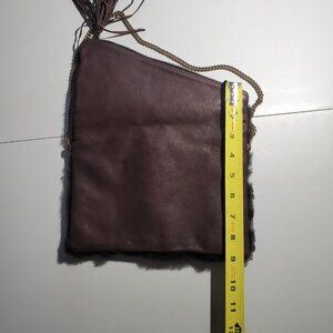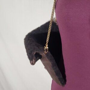 Dark Brown Leather and Sherpa Purse with Chain Strap -shipping incl