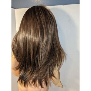 Dark Brown Medium Length Layers Shag Flicked Style Wig Synthetic Women Tags