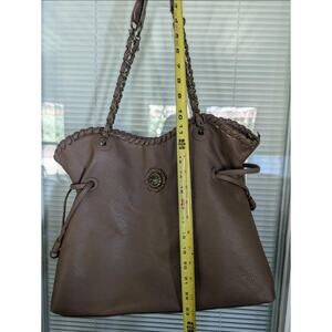 Dark Brown Pebbled Faux Leather Marion Slouchy Tote Gold Chain Bag Brass Horse