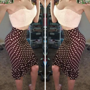 Dark Brown Ruffle Midi Skirt Polka Dot